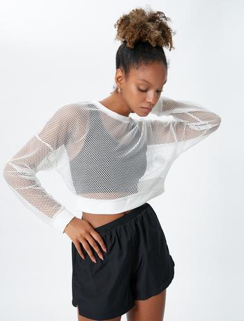 Crop Kroşe Tişört File Kısa Kollu Bisiklet Yaka Ajurlu