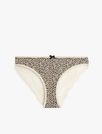 Rahat Kalıp Arkası Dantelli Pamuklu Leopar Desenli Brazilian Külot Sepete Ekle