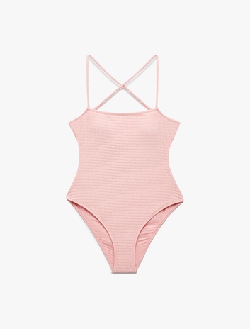 Sırt Detaylı Çapraz Askılı Aksesuarlı Dokulu Mayo Sepete Ekle