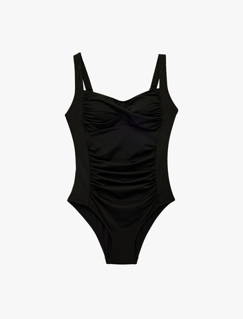 Kalp Yaka Drape Detaylı Kalın Askılı Toparlayıcı Mayo Sepete Ekle