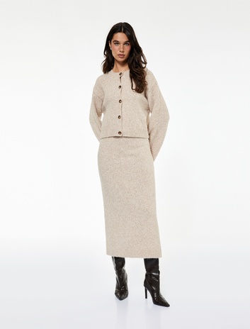 Koton X Sibil Çetinkaya - Yırtmaç Detaylı Yüksek Bel Midi Triko Etek Sepete Ekle