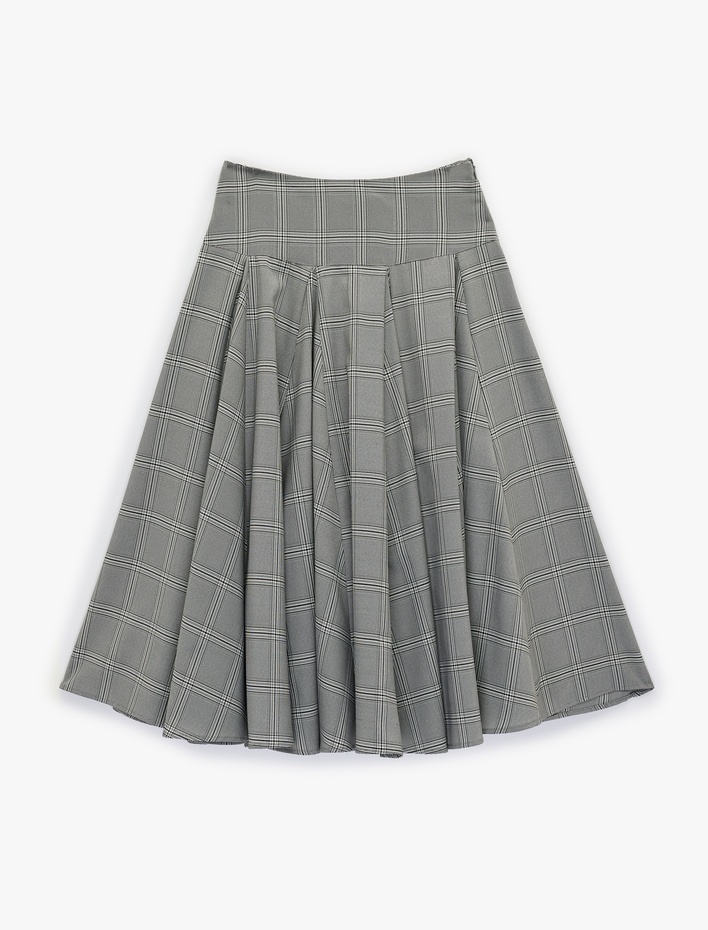 Rahat Kalıp Kloş Kesim Pileli Midi Ekose Etek Sepete Ekle