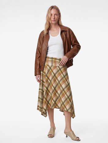 Viskon Karışımlı Asimetrik Kesim Midi Ekose Etek Sepete Ekle