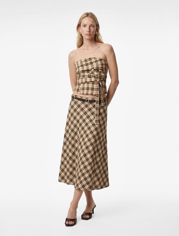 Kemerli A Kesim Midi Ekose Etek Sepete Ekle