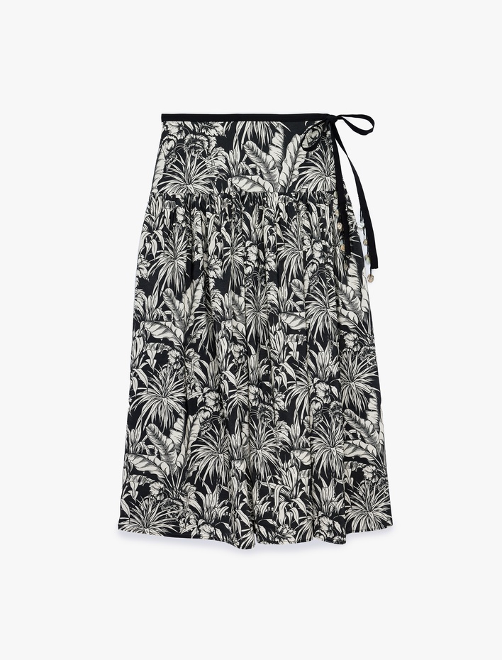 Viskon Kumaş Pileli Belden Oturtmalı Fiyonklu Çiçekli Midi Kloş Etek Sepete Ekle