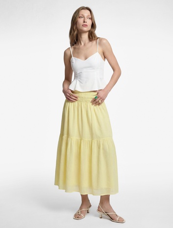 Midi etek kombinleri yaz tasarımları ise bu sezon kloş ve çan formlarda karşımıza çıkıyor. Özellikle büstiyerler ile başarılı kombinler yaratan beyaz midi etek modelleri, yırtmaç detaylarıyla beğenilerek tercih ediliyor. Çiçekli midi etek tasarımları da yaza renkli dokularıyla enerji katıyor.