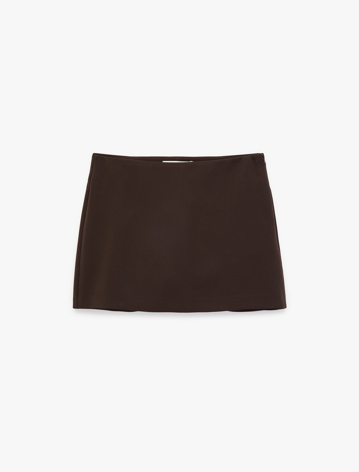 Mini Şort Etek Metal Aksesuarlı Fermuarlı Standart Bel