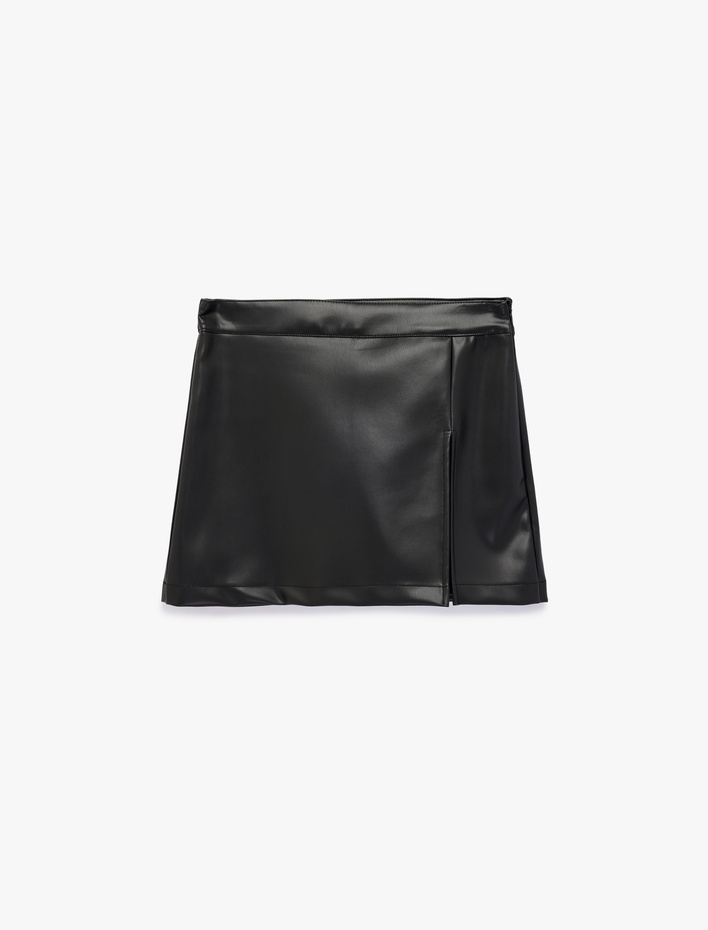 Yırtmaç Detaylı Mini Suni Deri Şort Etek Sepete Ekle