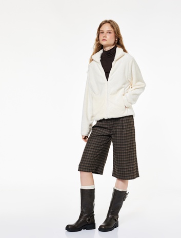 Rahat Kalıp Uzun Kollu Cepli Fermuarlı Dik Yaka Peluş Ceket Sepete Ekle