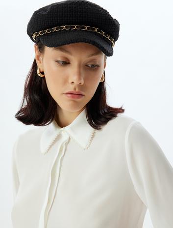 Yakası İnci Taşlı Gömlek Uzun Kollu Krep Kumaş Sepete Ekle