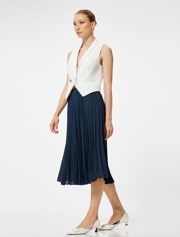 Midi Pileli Etek Normal Bel