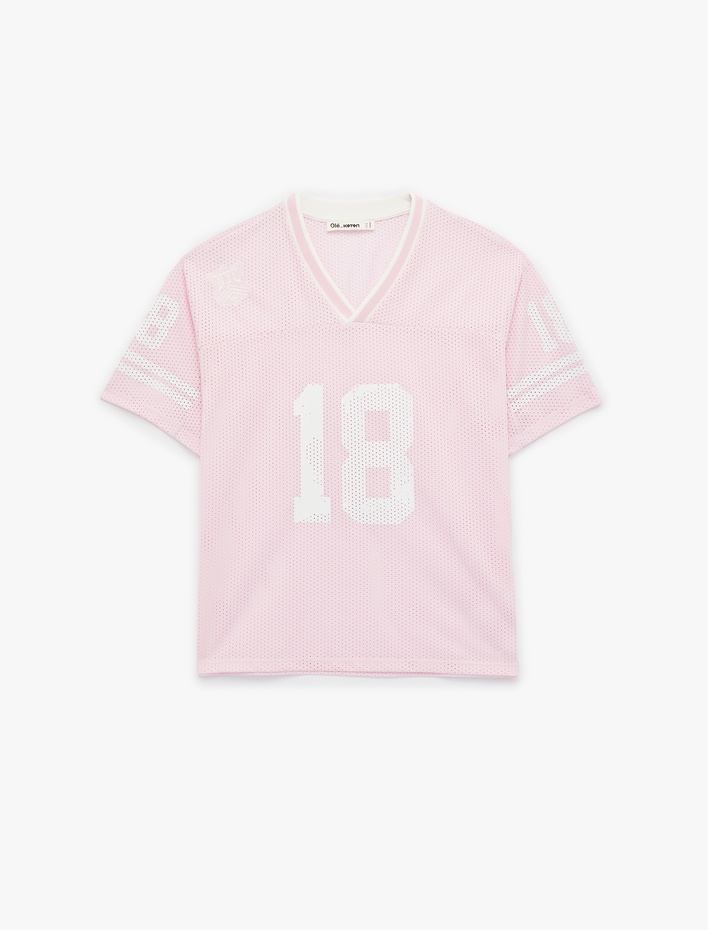 Oversize V Yaka Kısa Kollu Baskılı File Tişört Sepete Ekle