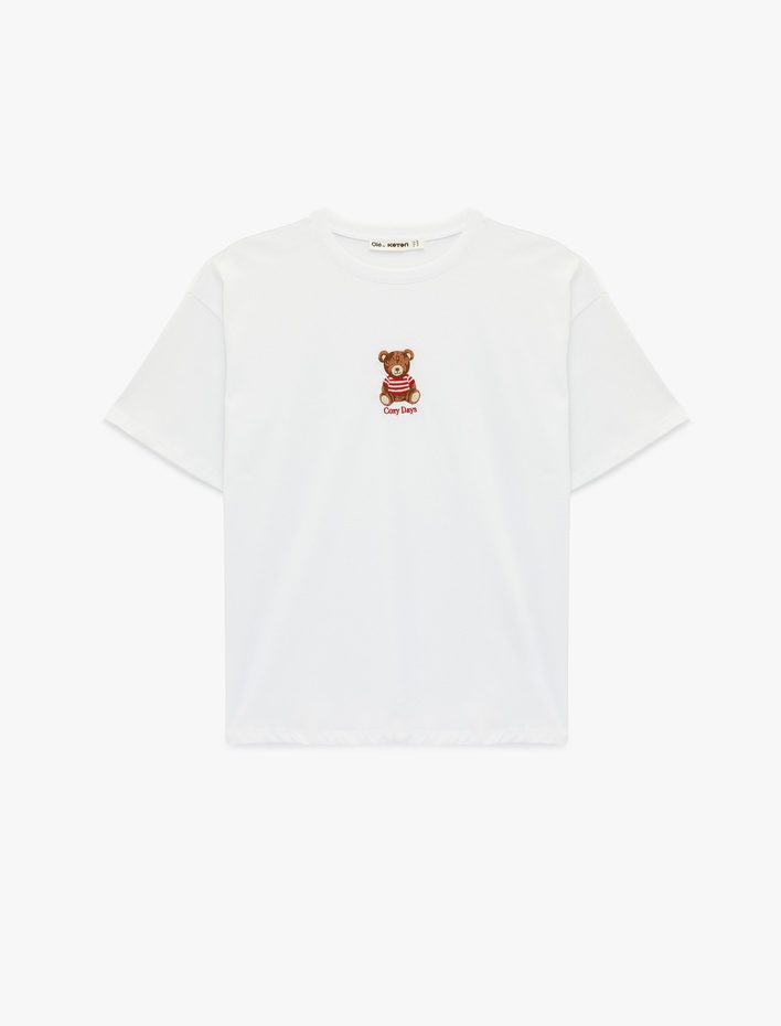 Kısa Kollu Ayıcık Nakışlı Bisiklet Yaka Oversize Tişört Sepete Ekle
