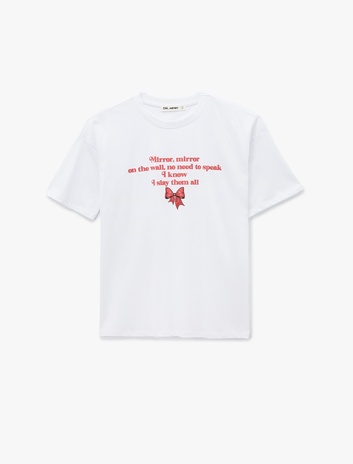 Koleksiyonda en canlı renklerden doğal tonlara kadar pek çok tişört seçeneği yer alıyor. Basic renkler, koleksiyonun en çok satanlarını oluşturuyor. Kadın siyah oversize tişört modelleri, favori seçeneklerden. Her kadının gardırobunda siyah renkte birkaç oversize tişört bulunmalı. Zahmetsizce kombinlenebilen oversize siyah tişört ile farklı stillere imza atabilirsiniz. Sporda, ofiste, günlük hayatta tişörtünüzle alternatif kombinler oluşturabilirsiniz.Koleksiyonun sevilen diğer bir rengi ise beyaz. Kadın beyaz oversize tişört ile sokak stilinize keyifli bir dokunuş katabilirsiniz. Beyaz oversize tişört modelleri, günün her anında kullanılmaya uygundur. Oversize beyaz tişört modelleriyle konforunuzdan ödün vermeden daima şık görünmeniz oldukça kolay.