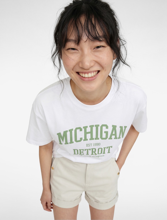 Enerjinizi giydiklerinizle yansıtmak isterseniz baskılı kadın oversize tişört modellerine bir şans vermelisiniz. Koleksiyonda slogan baskılı, minimal baskılı, çizgi karakter baskılı gibi pek çok oversize tişört modeli yer alıyor. Farklı yaka tipinde ve kol uzunluklarında tasarlanan tişörtlerle, dilediğiniz görünüme kavuşabilirsiniz.Desenli, oversize kadın tişört modelleri; en çok tercih edilen modellerden. Spor bir şıklığı benimseyen kadınlar için desenli modeller oldukça ideal. Siz de kombininiz için anahtar bir parça arıyorsanız desenli Koton oversize tişört modellerini denemelisiniz.