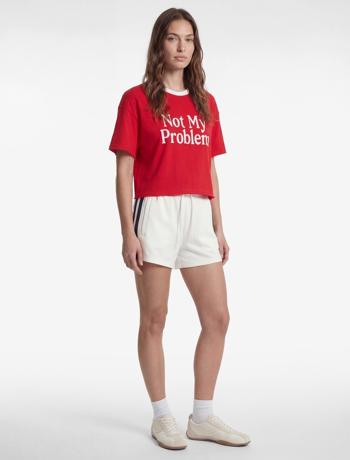 Oversize Omzu Açık Kısa Kollu Baskılı Crop Tişört