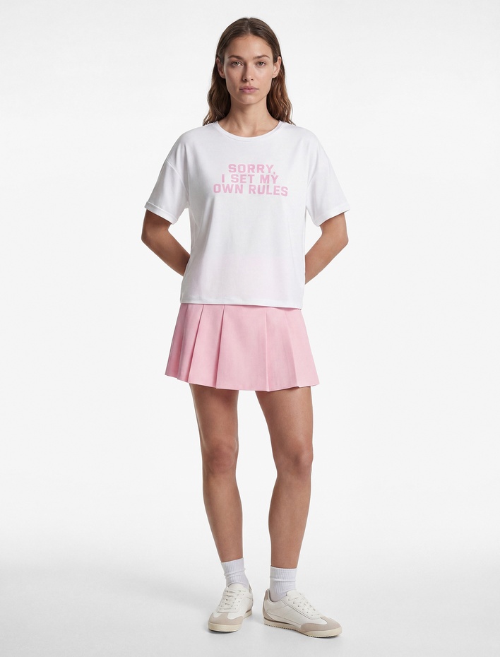 Enerjinizi giydiklerinizle yansıtmak isterseniz baskılı kadın oversize tişört modellerine bir şans vermelisiniz. Koleksiyonda slogan baskılı, minimal baskılı, çizgi karakter baskılı gibi pek çok oversize tişört modeli yer alıyor. Farklı yaka tipinde ve kol uzunluklarında tasarlanan tişörtlerle, dilediğiniz görünüme kavuşabilirsiniz.Desenli, oversize kadın tişört modelleri; en çok tercih edilen modellerden. Spor bir şıklığı benimseyen kadınlar için desenli modeller oldukça ideal. Siz de kombininiz için anahtar bir parça arıyorsanız desenli Koton oversize tişört modellerini denemelisiniz.