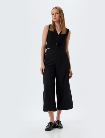 Culotte Kumaş Pantolon Paça Detaylı Cepli Normal Bel