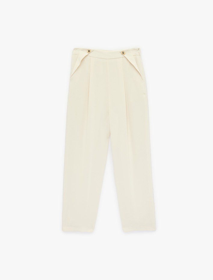 Krep  Kumaş Aksesuar Detaylı Cepli Yüksek Bel Havuç Pantolon Sepete Ekle