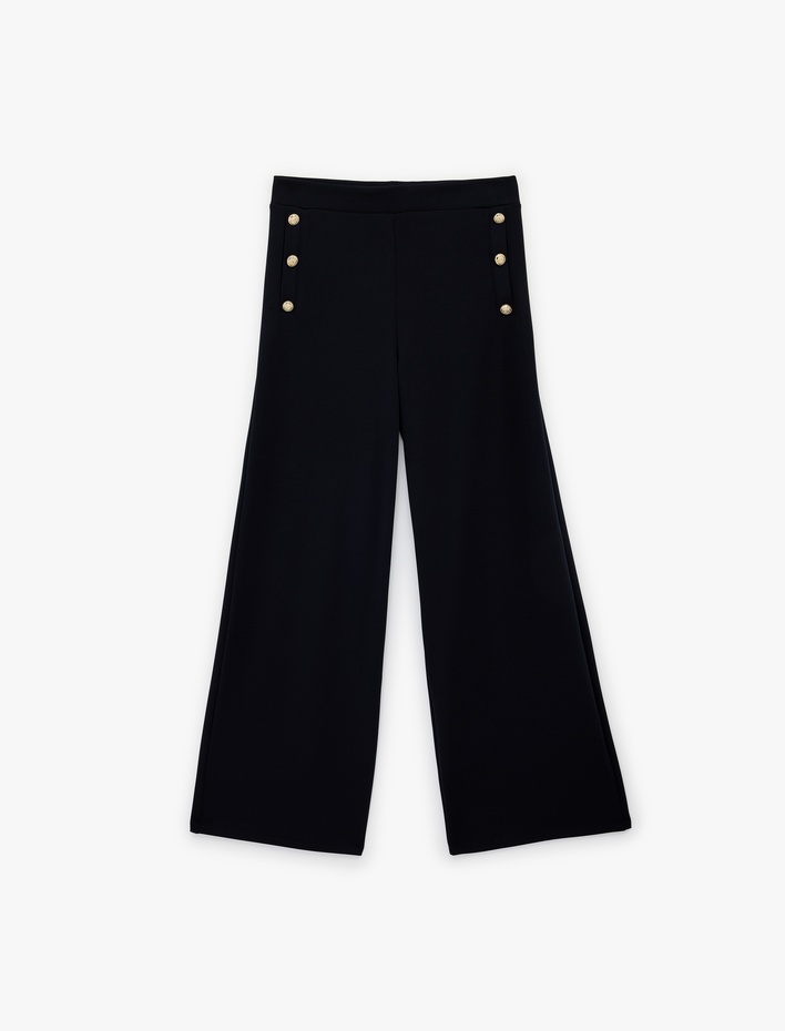 Krep Scuba Aksesuar Düğme Detaylı Geniş Paça Pantolon Sepete Ekle