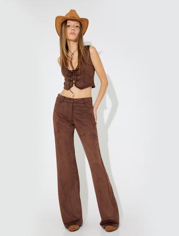 Koton X Zeynep Bastık - Süet İspanyol Paça Pantolon Cepli Standart Bel Sepete Ekle