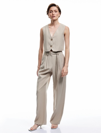 Koton X Sima Tarkan - Paraşüt Kumaş Cepli Kemerli Pile Detaylı Geniş Paça Pantolon Sepete Ekle