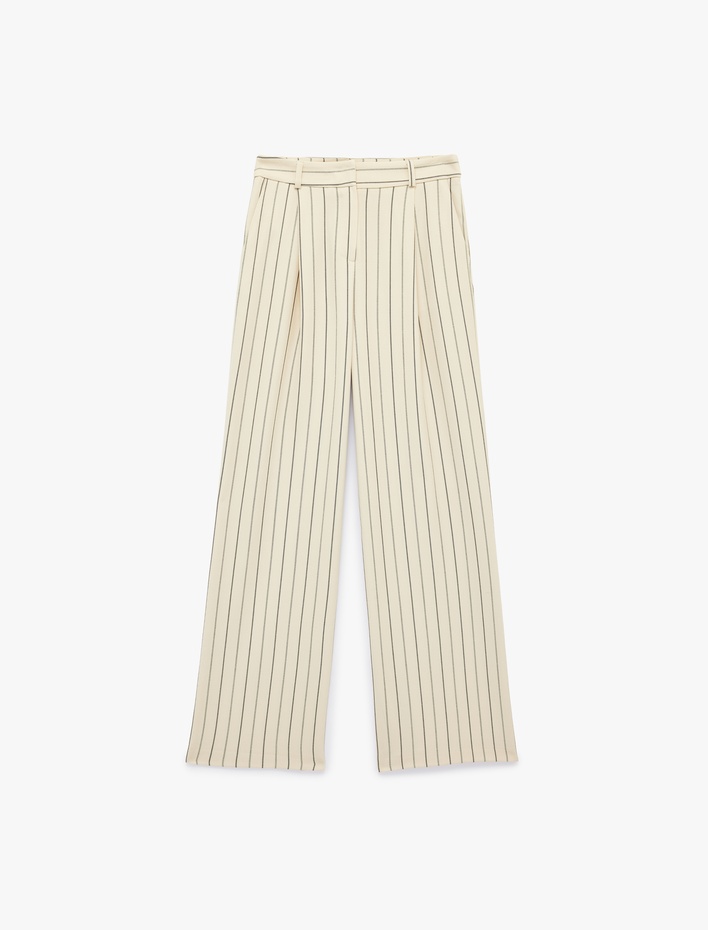 Cepli Kemerli Düz Geniş Paça Çizgili Kumaş Pantolon Sepete Ekle