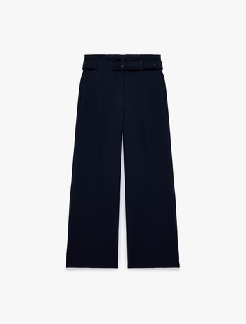 Krep Kumaş Kapak Detaylı Kemerli Geniş Paça Pantolon Sepete Ekle