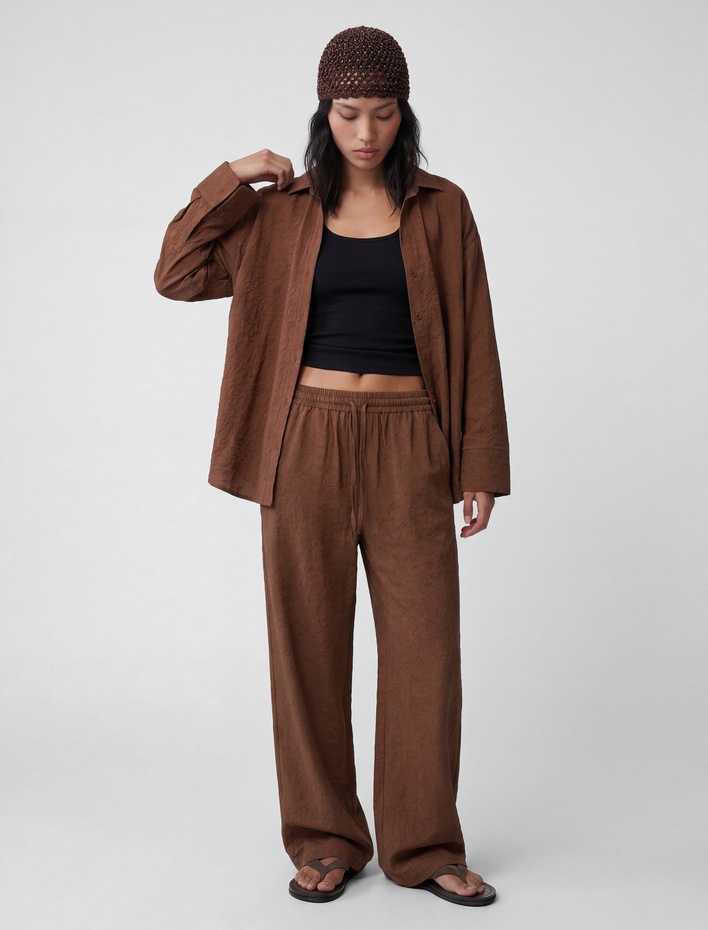 Beli Bağcıklı Geniş Paça Bürümcük Pantolon Sepete Ekle