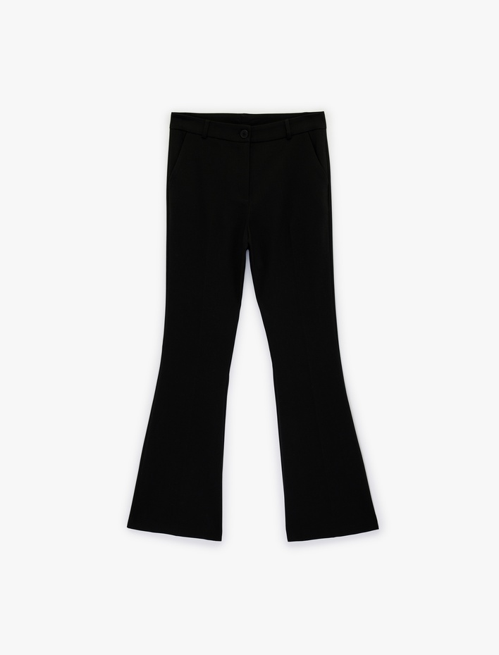 Düğmeli Normal Bel Viskon Karışımlı İspanyol Paça Pantolon Sepete Ekle