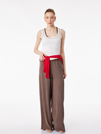 Pile Detaylı Geniş Paça Kumaş Palazzo Pantolon