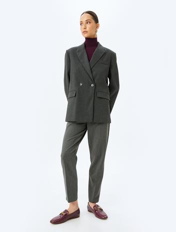 Slim Düz Paça Kumaş Pantolon Cepli Standart Bel