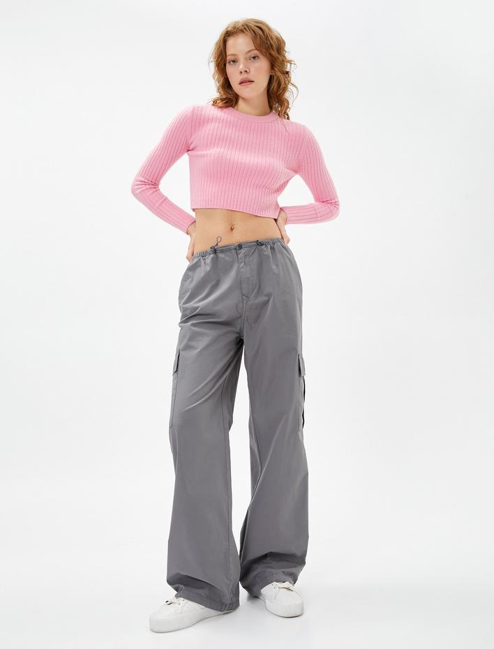 Kargo Pantolon Beli Lastikli Geniş Paça Cepli Dokulu
