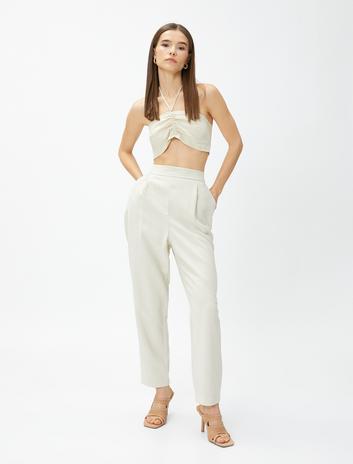 Düz Paça Pantolon Cepli Keten Karışımlı