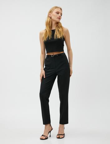 Kemerli Basic Kumaş Pantolon Normal Bel Sepete Ekle