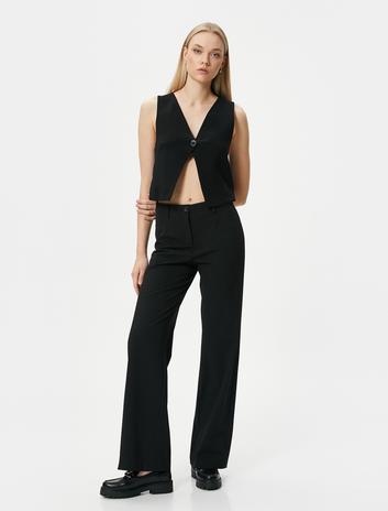 Palazzo Pantolon Yüksek Bel Düz Paça Düğmeli