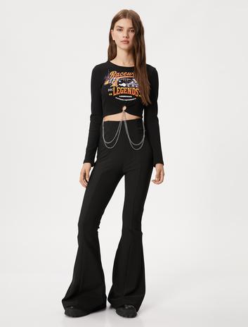 İspanyol Paça Tayt Pantolon Yüksek Bel Desenli Sepete Ekle