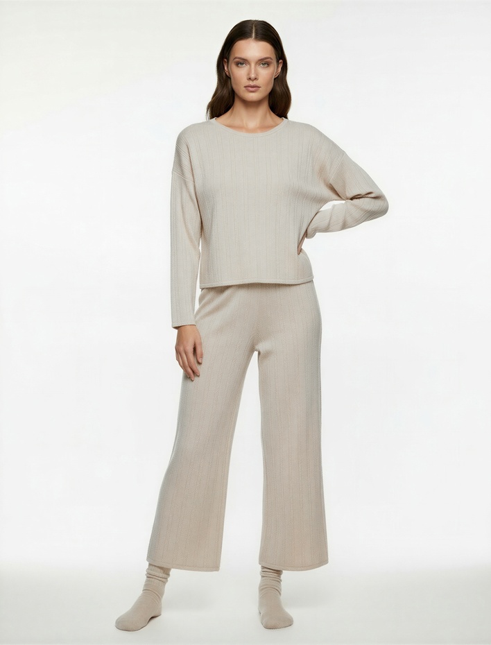 Crop Örme Pijama Üstü Rahat Kalıp Uzun Kollu Bisiklet Yaka Sepete Ekle