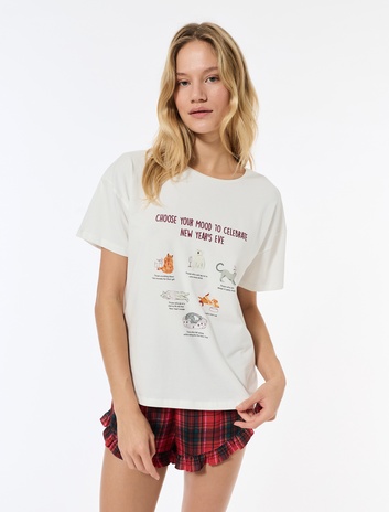 Yılbaşı Temalı Pijama Üstü Uzun Kollu Bisiklet Yaka Sepete Ekle