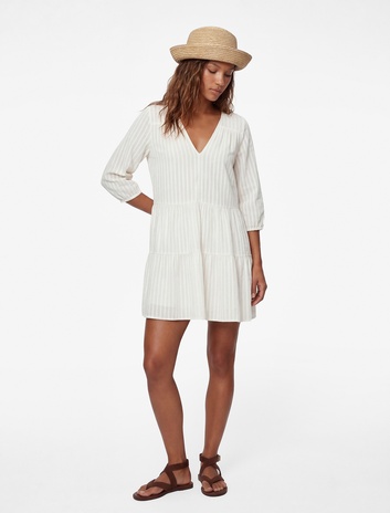 Pamuklu Rahat Kalıp Uzun Kollu V Yaka Kısa Plaj Elbisesi Sepete Ekle