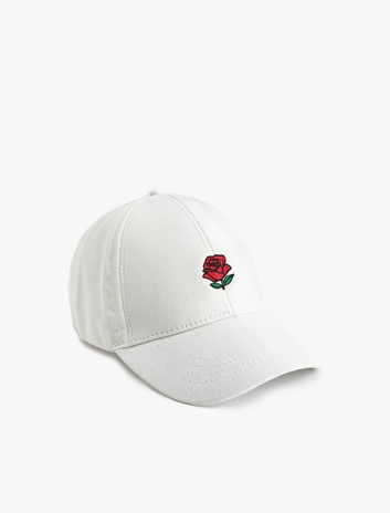 Kadın Gül İşlemeli Pamuklu Kep Şapka