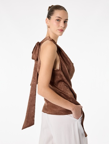 Asimetrik Kesim Kolsuz Sırtı Bağcıklı Saten Degaje Yaka Bluz