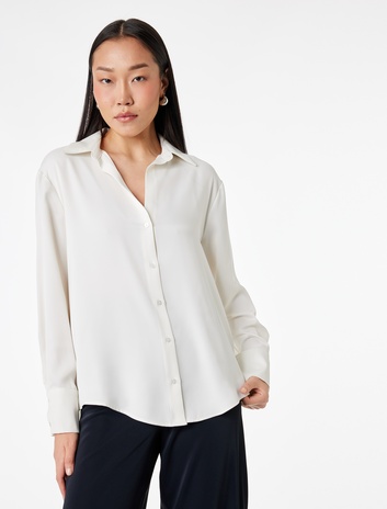 Koton X Şahika Ercümen - Bol Kalıp Uzun Kollu Kaçık Yaka Saten Gömlek