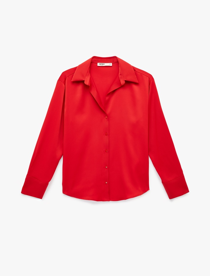 Uzun Kollu Klasik Yaka Düğmeli Saten Gömlek Sepete Ekle