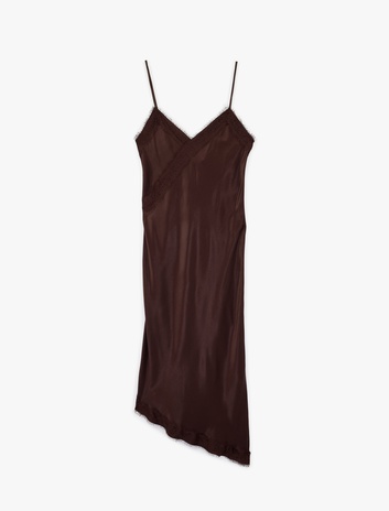 İp Askılı Asimetrik Dantel Detaylı Saten Elbise Sepete Ekle