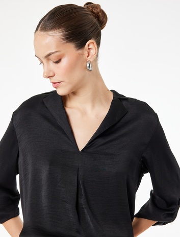 Aerobin Devrik Kaçık Yaka 3/4 Kol Saten Bluz