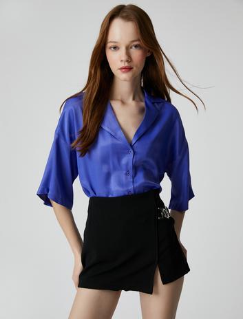 Saten Gömlek Viskon Kısa Kollu Düğmeli Sepete Ekle