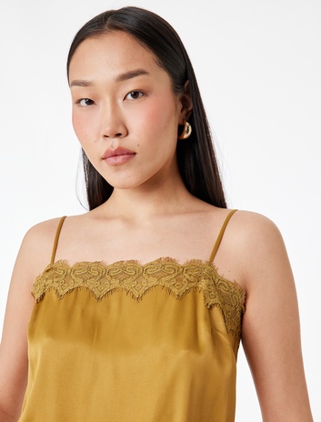 Dantel Detaylı İnce Askılı Saten Bluz Sepete Ekle
