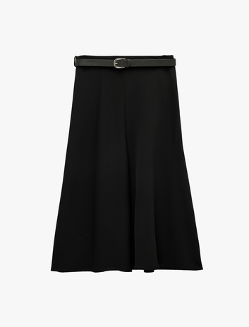 Krep Kumaş Kemer Detaylı A Kesim Midi Etek Sepete Ekle