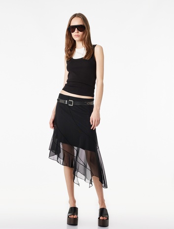Asimetrik Slim Fit Tül Detaylı Midi Etek Sepete Ekle